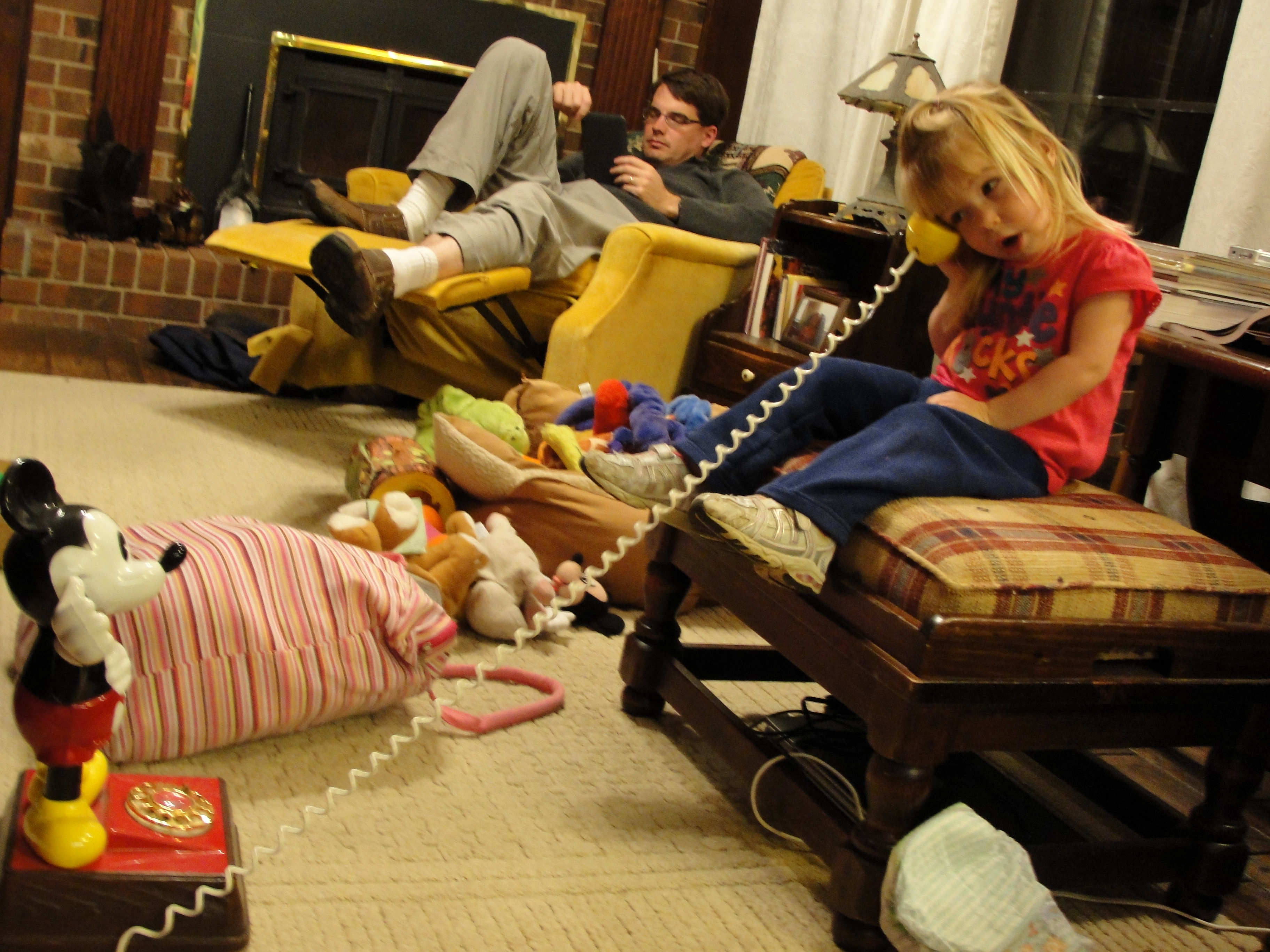 Hazel played with my sister’s old phone that she used when we were little. Don’t think Hazel had ever seen a rotary phone before. She had fun with that. She has a great imagination.