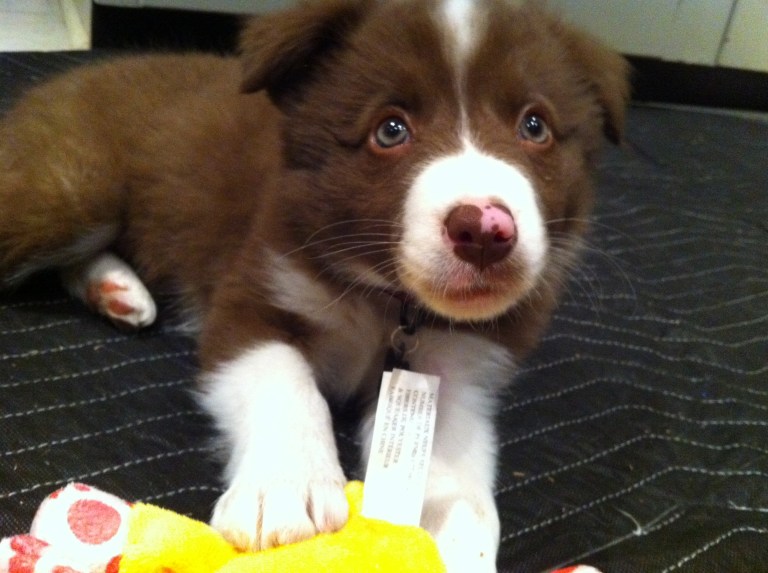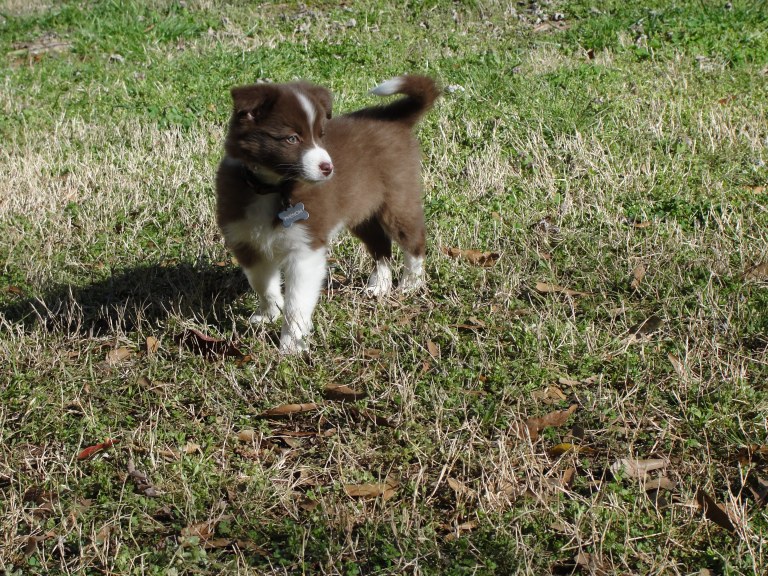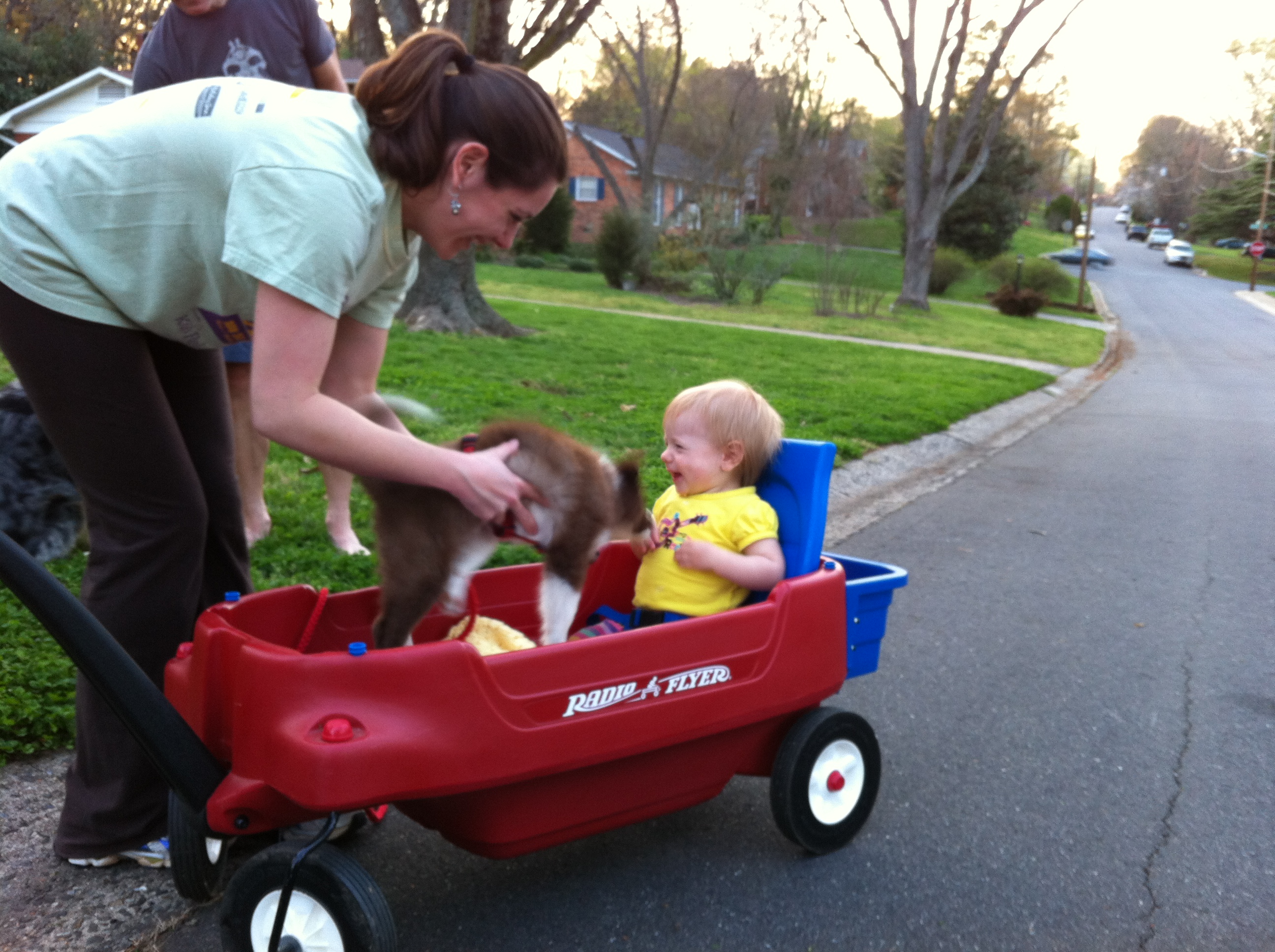 I took her for a walk down my street the other day and one of my neighbor’s literally ran out of her house in the middle of their dinner to see her. Ha! They have a border collie too. Then she got to meet their little son, and she got to ride in the wagon with another one of my neighbors.