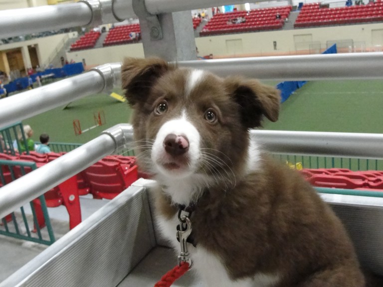 Well, sort of. She got to watch her first trial. Phenom came along with Ace and I on Saturday.