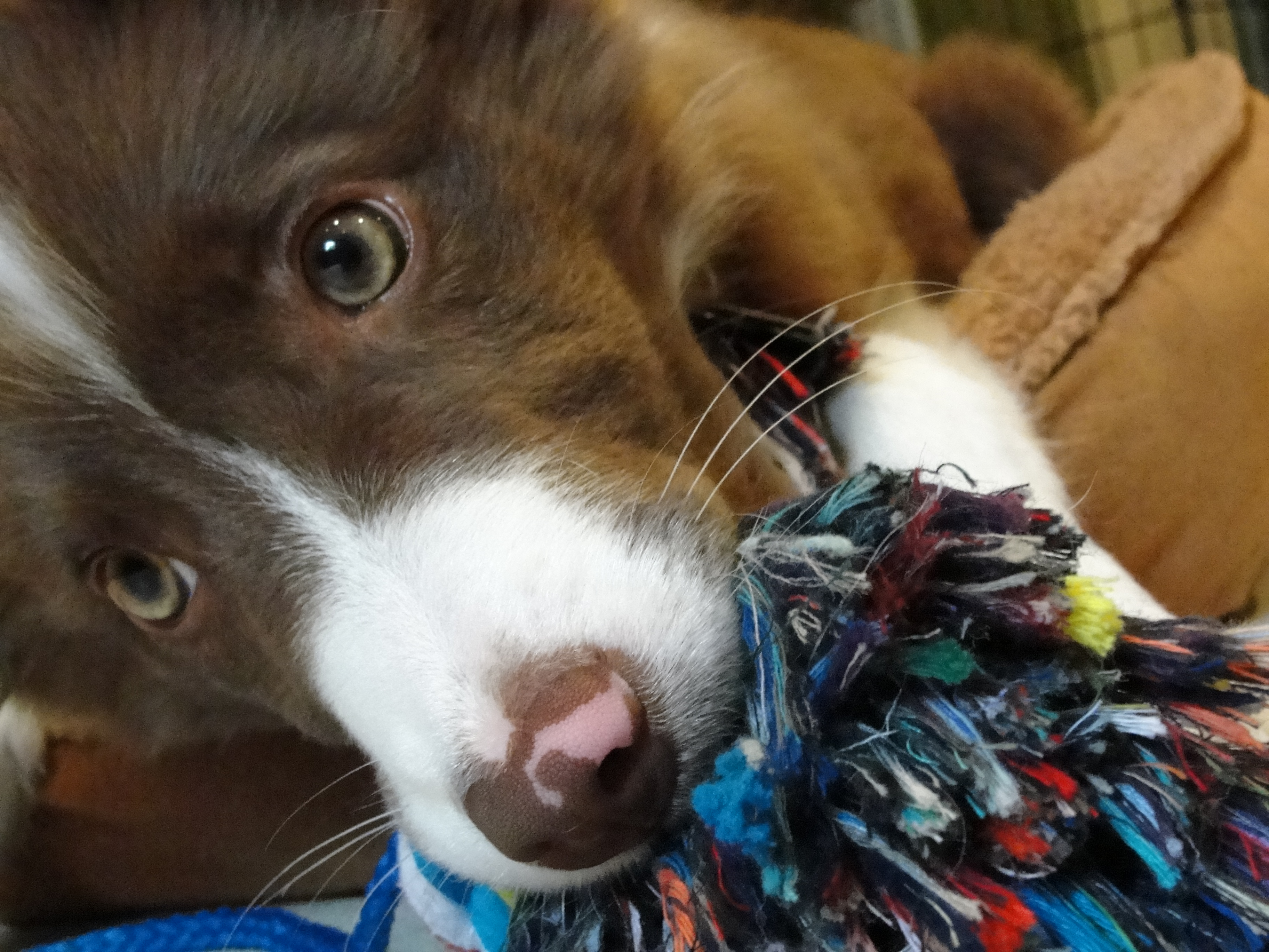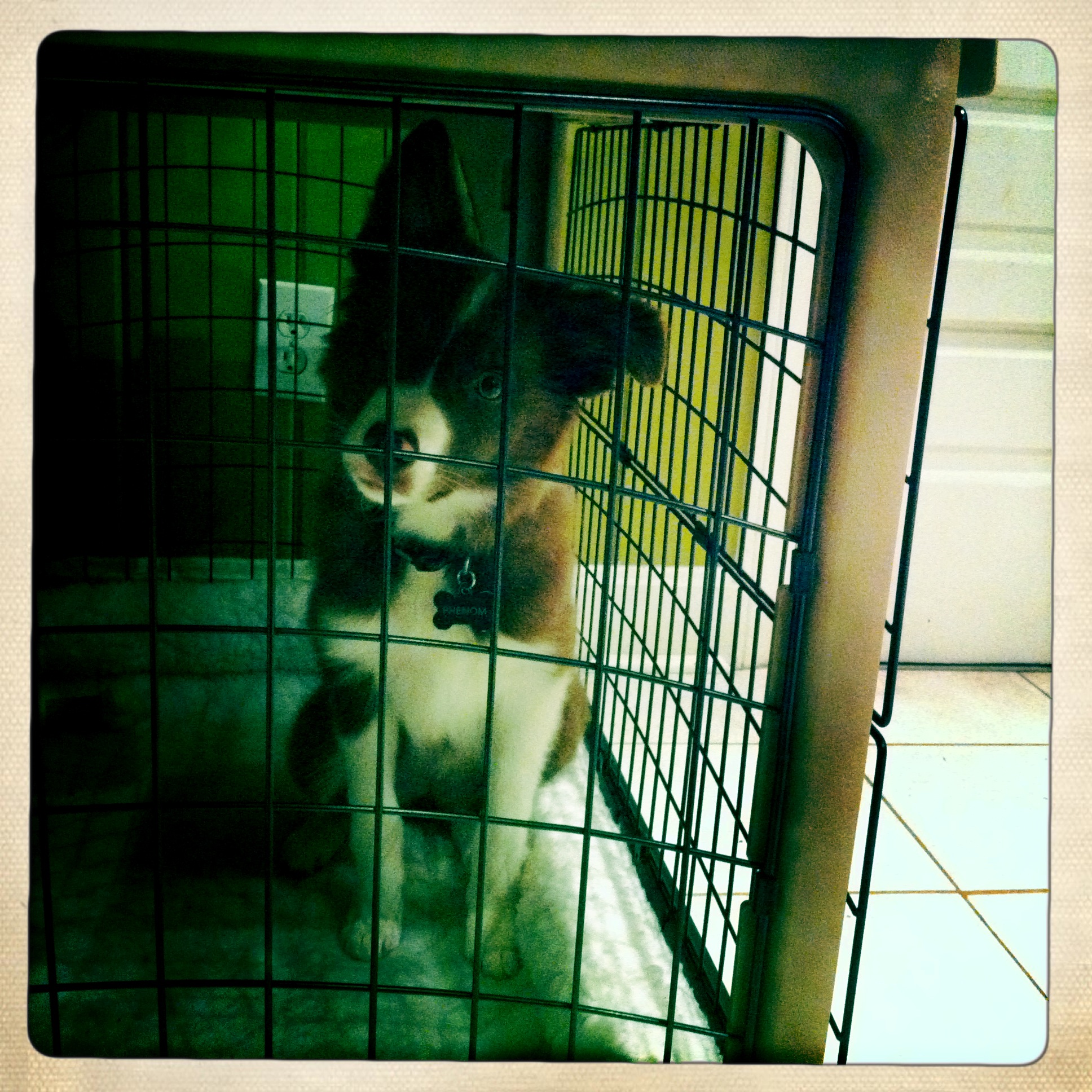 This week Phenom stayed in her open crate while I tugged with Vega. Big deal. I was impressed. Lots more to work on, but it is an important piece of our training puzzle.