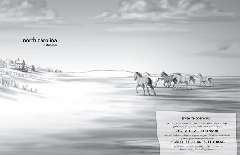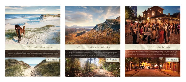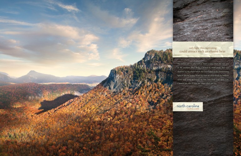 But it became an unforgettable epic adventure that I hope many others can experience. Below are the finished print ads that I wrote and concepted along with an incredible team at LGA. I was honored to be a part of it and to get to work with such an amazing client like North Carolina Tourism. Credits are below along with two other ads that appeared in the print campaign. If you click on the image – you can see a larger version and read the copy.