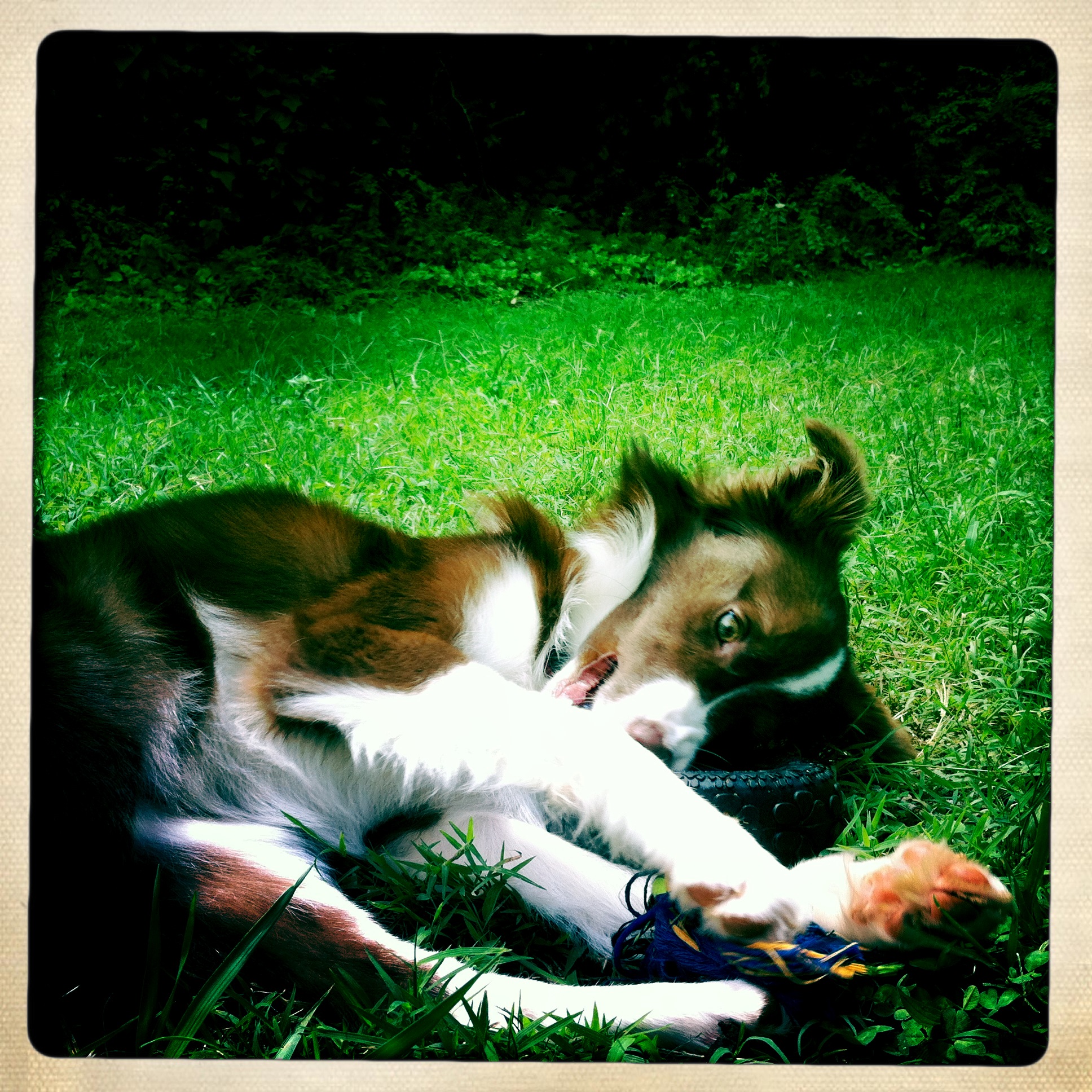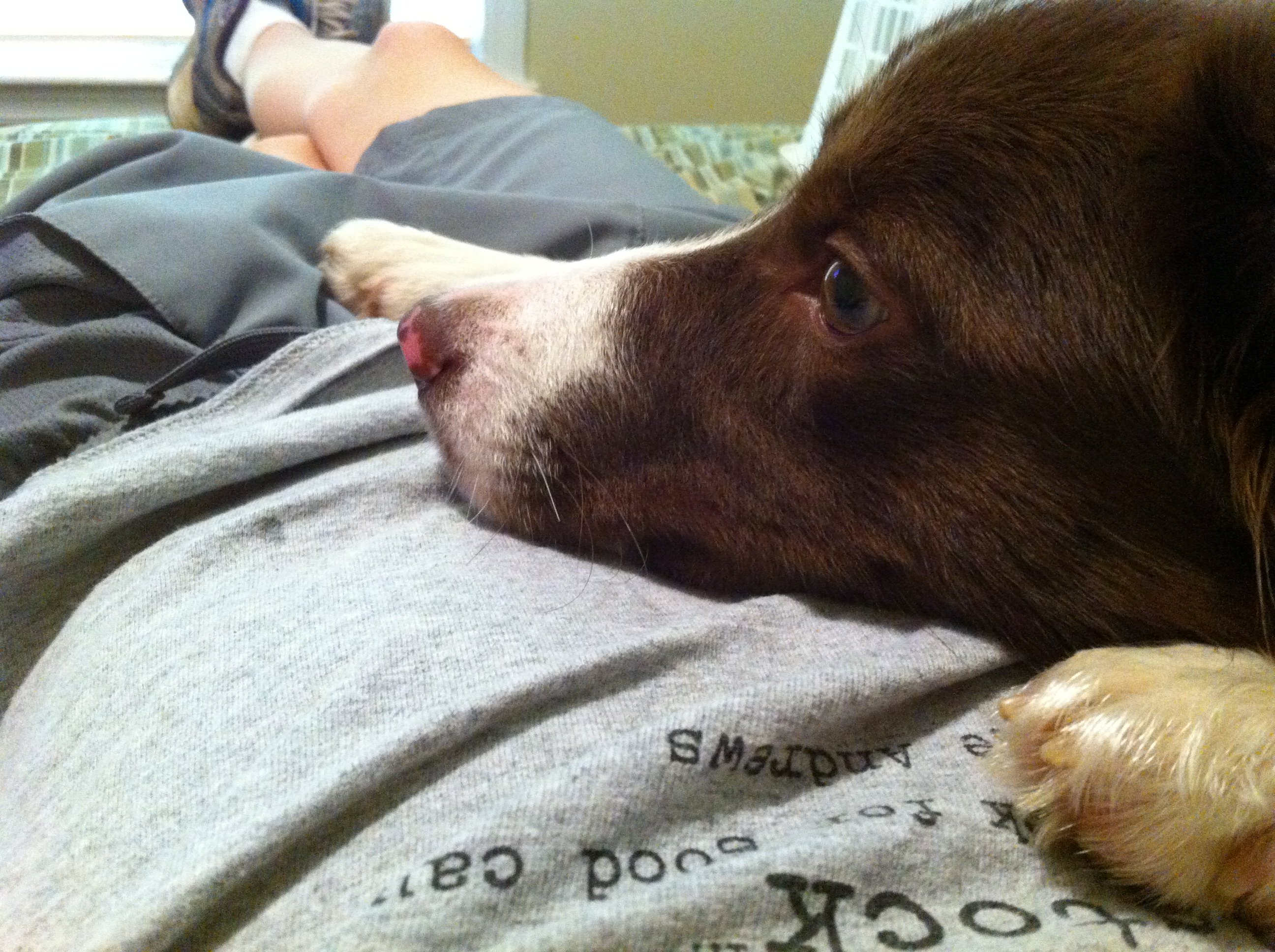 Oh – fun. Did I mention that too? – ha ha. She likes watching tennis on TV – oh and I Love Lucy and Zumba fascinate her as well. She is such a character. Always making me laugh. Loves the camera. Loves to put on a show. Oh and super sweet too. She still loves her cuddles. And when I sit on the floor with her, she usually ends up rolling into my lap or trying to steal my hat. My sheltie, Jess, that I had when I was a little girl used to steal my hat – so this especially makes me smile. Like he’s winking at me somewhere. He was the best.