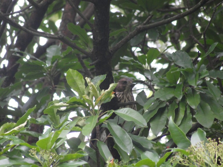 But since I moved to Charlotte, there’s been a very persistant presence in my life – in the form of a red-tailed hawk. She follows me everywhere. I see her on our walks to the park, I’ve seen her at work sometimes when I’m out writing on the deck. She’s even camped out in my backyard.