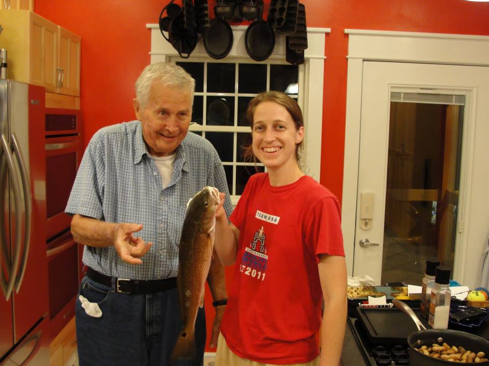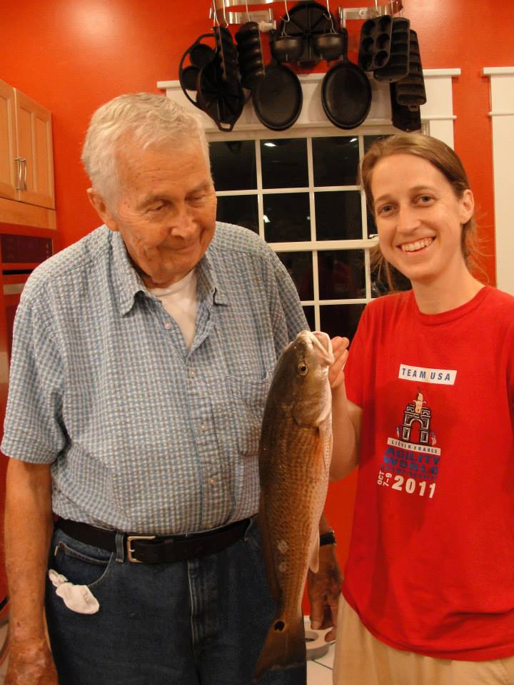 He would sing us that when we were little. Every now and then he’d pull my little pony tail and I’d whip around and say “who do dat?” We listened to Kenny Rogers and laughed at Ray Stevens “Mississippi Squirrel Revival.” He laughed at “It’s Me Again Margaret” and I mostly cringed. And he laughed some more. Flying kites – like crazy serious-fast can-hurt-you kind of kites. Many ferry boat rides. Aircraft covering workshop. Tutoring me on learning morse code – dah dah dit dah – pay day today. Deep sea fishing. Homemade ice cream. Walks through cemeteries. Using a frisbee to paddle a broken down boat. Keeneland race track after a race with mint juleps still sitting around. He’d also say – “Don’t act your age.” Quebec. Visiting memorials. LL Bean main store. Once we went to watch this train go by – it was so loud and fast, I remember it knocked me back into some trees that edged the tracks. Horse shows. He would look down his glasses at me if I wasn’t acting completely good or sometimes just to make me smile. Going through old photos and family history. Getting our boat beached on an island at low tide and having to wait for the tide to change to get home. Dollywood. Guidestones. Coming to watch agility trials even when I wasn’t competing. Fishing the surf and the sound. Graduations. Walks on the beach. More fishing. Puzzles. Museums. NASCAR Hall of Fame. Dolphin watching. Aquariums. USS North Carolina. Harley Davidson Cafe in Manhattan. Intrepid Air and Space Museum. His answer to “Are we there yet?” “Not as long as it has been.” Gardening. Facebook. Macs. Smart phones. Twitter. Flickr. Gmail. Yahoo. Kindle Fire. We both learned all about those things together. He was always curious. Always reading and learning. But “Read the instructions as a last resort.” he’d say. An engineer, pilot, woodworker, cub scout leader, WWII navy veteran, ham radio operator, dad, granddad, great granddad. And so much more. The greatest generation. When I was missing home in college – he used to write me emails every single day. He never liked a lot of “show” – didn’t want recognition or honors. Catching a huge Red Drum off the dock – biggest fish I ever caught. And he still had one bigger, but it broke his line.